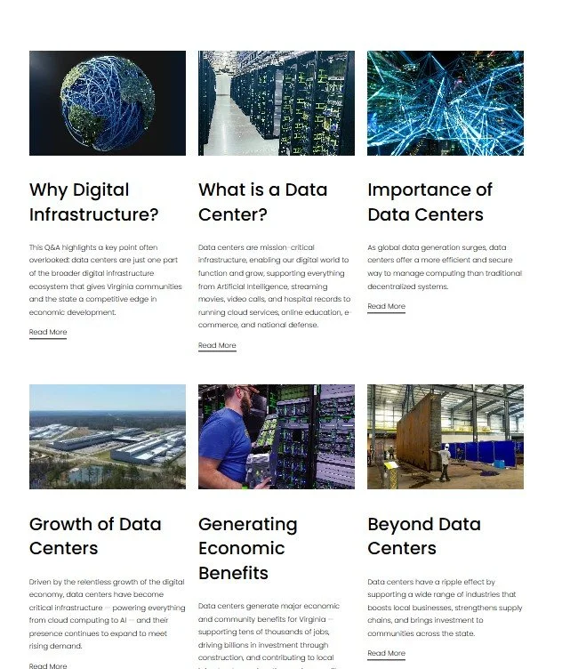 These indirect jobs help grow Virginia’s workforce and stimulate economic activity well beyond the data centers themselves. Over time, this ecosystem also supports higher-skilled technical roles, strengthens local supply chains, and attracts additional investment from companies that rely on reliable, high-capacity digital infrastructure.